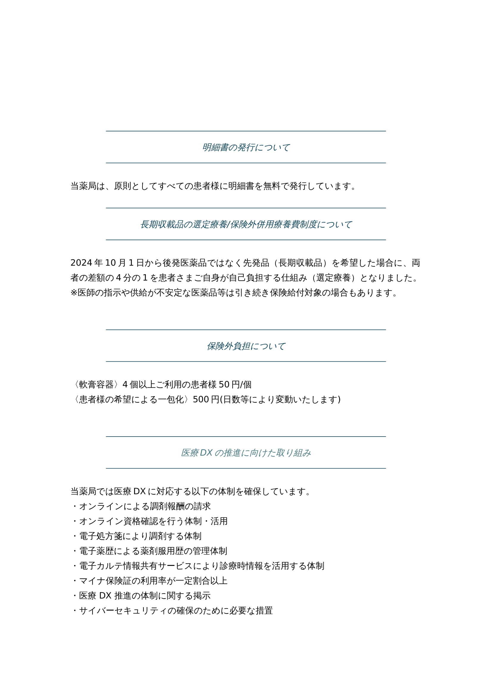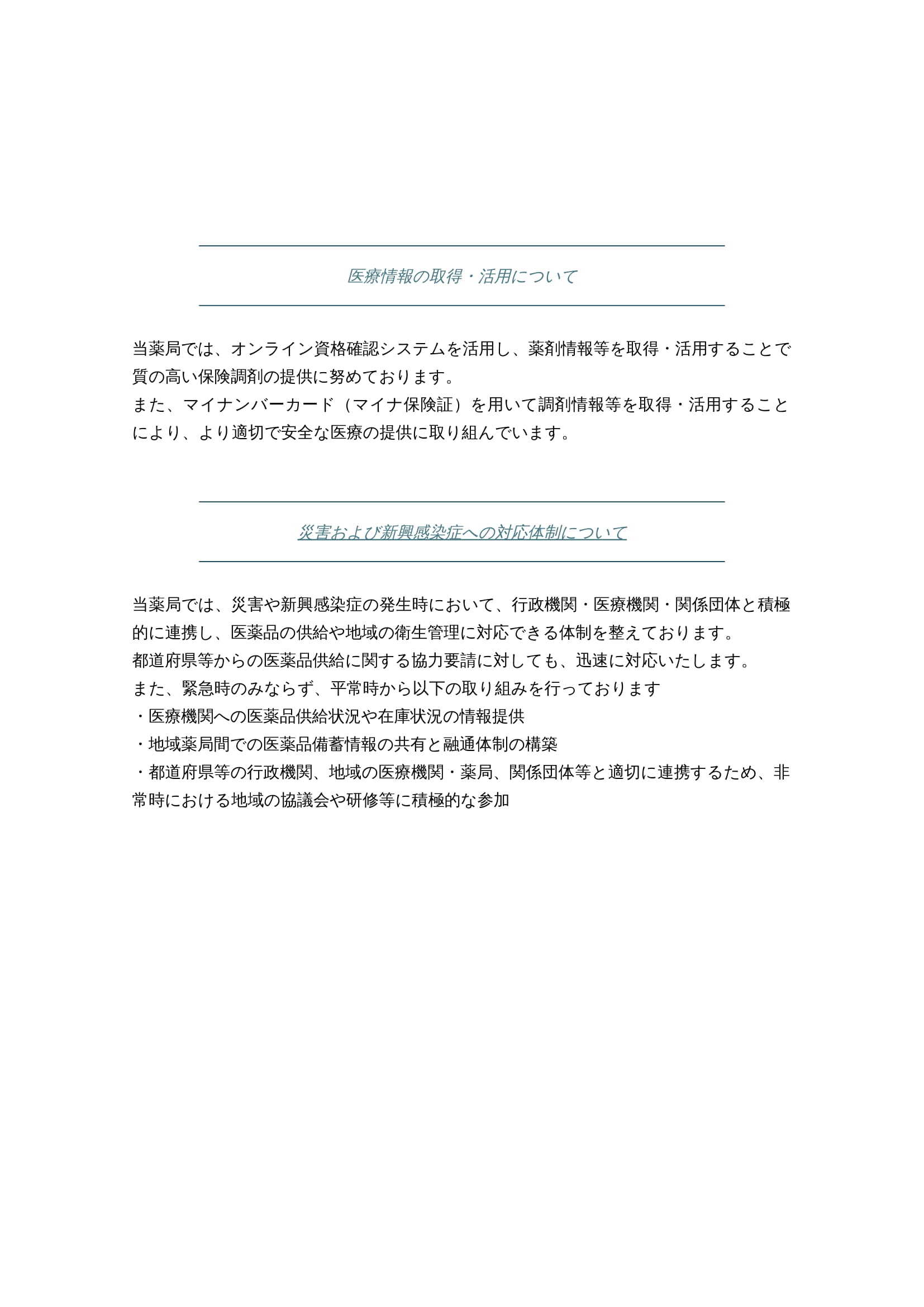 また、電子処方箋および診療情報共有サービスの導入により、質の高い診療を実施するための十分な情報を取得・活用して診療を行っています。